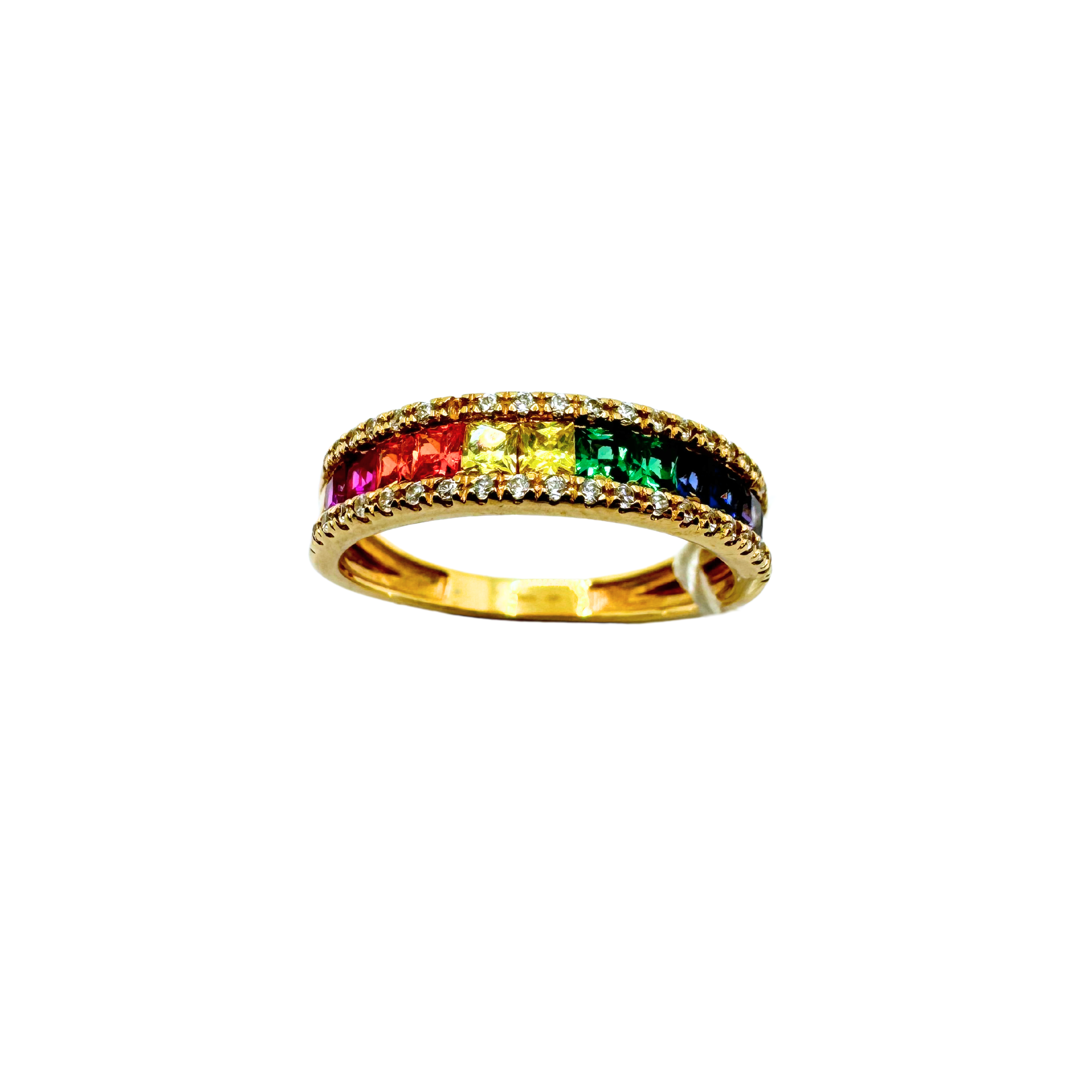 Veretta in oro giallo 18 KT con Zirconi Rainbow Multicolore